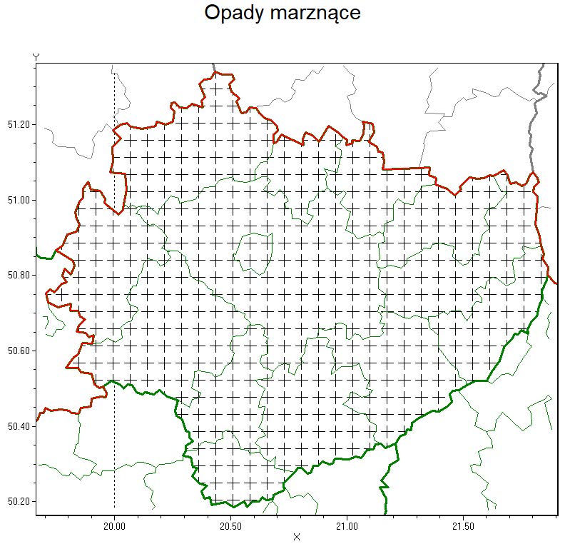 Sytuacja meteorologiczna: Miejscami obserwuje się marznące opady deszczu lub mżawki o słabym natężeniu, powodujące gołoledź. Zgodnie z treścią ostrzeżenia prognozuje się dalsze występowanie miejscami opadów deszczu przy przeważnie ujemnej temperaturze gruntu.