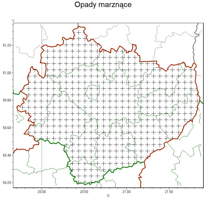Sytuacja meteorologiczna: Miejscami nadal obserwuje się ujemną temperaturę gruntu (Igołomia -1.0°C, Jastrzębia -0.7°C, Borusowa -0.3°C, Kielce -0.7°C). Przez obszar województwa świętokrzyskiego i północnej części województwa małopolskiego przemieszcza się strefa słabych opadów mżawki lub deszczu. Opady lokalnie mogą powodować gołoledź. Zjawisko będzie zanikać: w dalszej części nocy prognozuje się wzrost temperatury powyżej 0°C.